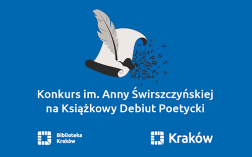 Biblioteka Kraków oraz Wydział Kultury Urzędu Miasta Krakowa zapraszają poetów, którzy marzą o debiucie książkowym do udziału w XII już edycji konkursu Konkursu im. Anny Świrszczyńskiej na Książkowy Debiut Poetycki. Nagrodami w konkursie są: wydanie wybranego przez jury tomu poetyckiego, spotkanie autorskie oraz promocja książki podczas tegorocznej NOCY POEZJI. Zgłoszenia należy przesyłać do 30 kwietnia 2025 r.