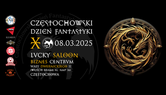 Organizatorzy Częstochowskiego Dnia Fantastyki zapraszaja na kolejną, już dziesiątą jego edycję. W sobotę 8 marca 2025 rolu na fabów fantastyki czeka wiele atrakcji w Lucky Saloon oraz na Biznes Centrum (Wały Dwernickiego 11).