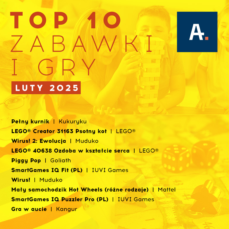 Ateneum, dystrybutor książek, gier, zabawek i artykułów papierniczych, przygotowało zestawienie TOP 10 najlepiej sprzedających się gier i zabawek w lutym 2025 roku.