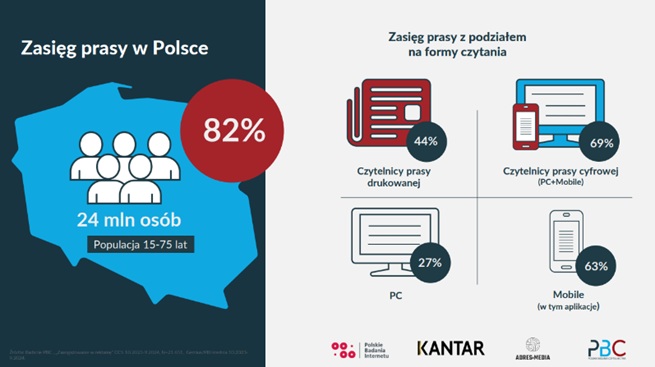 Zgodnie z raportem PBC, prasa ma wysoki zasięg we wszystkich grupach wiekowych. Po wydania drukowane, e-wydania i subskrypcje cyfrowe sięgają czytelnicy, którzy płacą za dostęp do treści. W 2024 wydali oni na zakup prasy ponad miliard złotych. W serwisach internetowych tytułów prasowych treści są dostępne w większości za darmo.