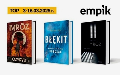 Na kolejnej liście Empiku w pierwszej trójce dwa kryminały Remigiusza Mroza: na miejscu pierwszym Ozyrs (Czwarta Strona), na trzecim Bezkarny (Wydawnictwo Filia). Na miejscu drugim piąty tom cyklu “Kolory Zła” – Błęktit Małgorzaty Oliwii Sobczak (Wydawnictwo W.A.B.).