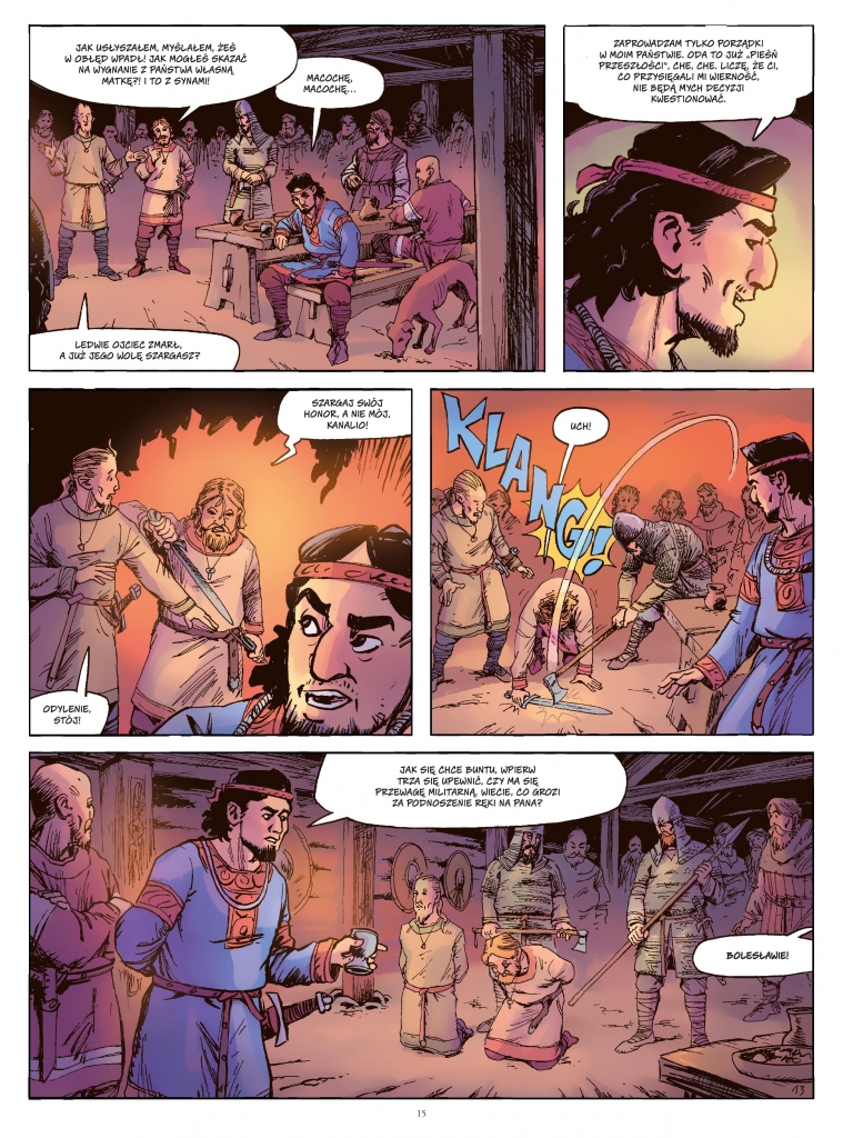 Scenariusz został skonstruowany tak, by czytelnik mógł nie tylko poznać fakty, ale też przeżyć emocjonującą przygodę, pełną napięcia i dramatycznych momentów, ale niepozbawioną odrobiny humoru. Kur zadbał o to, by historia miała wyraźną strukturę narracyjną, a opowieść prowadziła od formowania się młodego władcy aż po jego największy triumf. Twórcy trzymali się faktów historycznych, konsultując treść z ekspertami z Muzeum Początków Państwa Polskiego w Gnieźnie. Tam też uzyskali dostęp do licznych materiałów źródłowych i ikonograficznych. – To NIE jest komiks komediowy, ale życie – również to sprzed 1000 lat – nie było pozbawione ironii i codziennych absurdów. Dlatego miejscami pojawiają się drobne żarty i lżejsze momenty. – mówi Maciej Kur. – Chcieliśmy, żeby historia była autentyczna i wciągająca – niezależnie, czy bohaterem jest postać historyczna, czy fikcyjna.