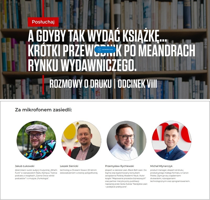 Cyfrowa rewolucja w świecie książki stała się faktem: dynamiczny rozwój technologii druku, nowe modele współpracy na linii autor – wydawnictwo – drukarnia oraz coraz większe znaczenie self-publishingu zmieniają oblicze branży wydawniczej. Canon, jako lider innowacji w sektorze poligrafii, stworzył wyjątkową przestrzeń do dyskusji o tych przemianach. W najnowszej serii podcastów „Rozmowy o druku” eksperci i praktycy rynku analizują, jak współczesne technologie wspierają drukarnie i wydawców, ułatwiają autorom publikacje książek i odpowiadają na oczekiwania współczesnych czytelników.