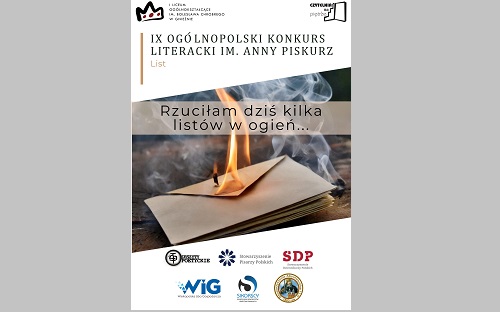 I Liceum Ogólnokształcące im. Bolesława Chrobrego w Gnieźnie zaprasza Uczniów szkół ponadpodstawowych do udziału w IX Ogólnopolskim Konkursie Literackim im. Anny Piskurz. Mottem tegorocznej edycji są słowa z twórczości Patronki: „Rzuciłam dziś kilka listów w ogień…”