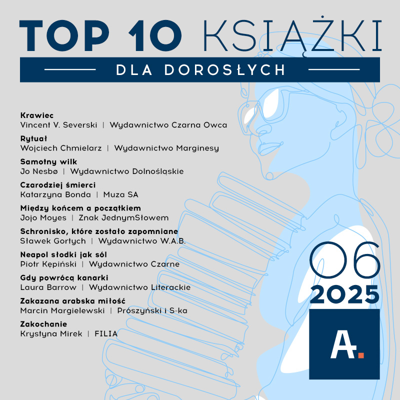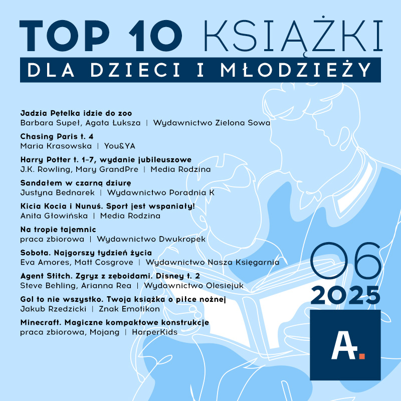 Ateneum, dystrybutor książek, gier, zabawek i artykułów papierniczych, przygotowało zestawienie TOP 10 najlepiej sprzedających się tytułów pośród premier wydawniczych czerwca 2025 roku w podziale na dwie kategorie: dla dorosłych oraz dla dzieci i młodzieży.