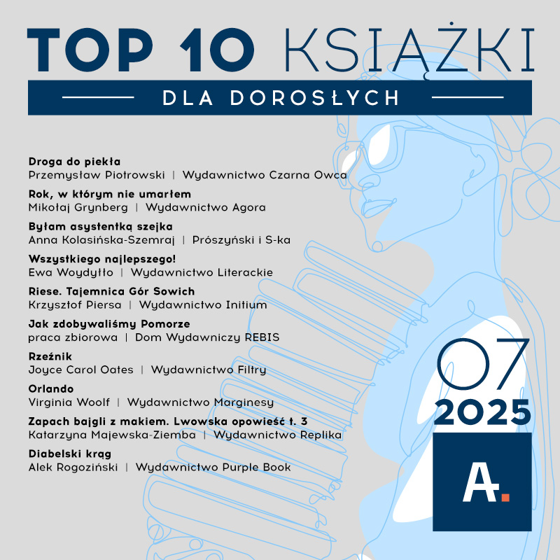 Ateneum, dystrybutor książek, gier, zabawek i artykułów papierniczych, przygotowało zestawienie TOP 10 najlepiej sprzedających się tytułów pośród premier wydawniczych lipca 2025 roku w podziale na dwie kategorie: dla dorosłych oraz dla dzieci i młodzieży.