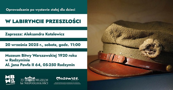 Muzeum Niepodległości zaprasza dzieci z rodzicami na oprowadzanie „W labiryncie przeszłości” po wystawie stałej Muzeum Bitwy Warszawskiej 1920 roku w Radzyminie, które odbędzie się w sobotę 20 września 2025 roku o godzinie 11.00.