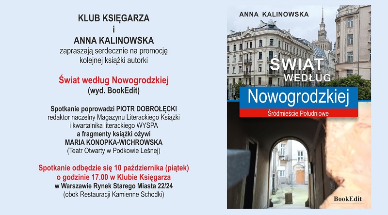 Klub Księgarza zaprasza na promocję książki Anny Kalinowskiej Świat według Nowogrodzkiej.