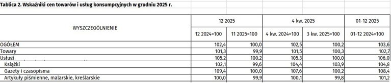 GUS: wskaźniki cen towarów i usług konsumpcyjnych w grudniu 2025 roku