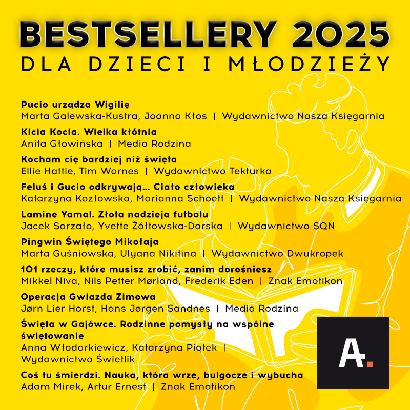 Ateneum, największy polski dystrybutor książek, gier, zabawek i artykułów papierniczych, przygotowało zestawienie 10 najlepiej sprzedających się ubiegłorocznych nowości książkowych w dwóch kategoriach: Bestsellery 2025 dla dorosłych oraz dla dzieci i młodzieży.