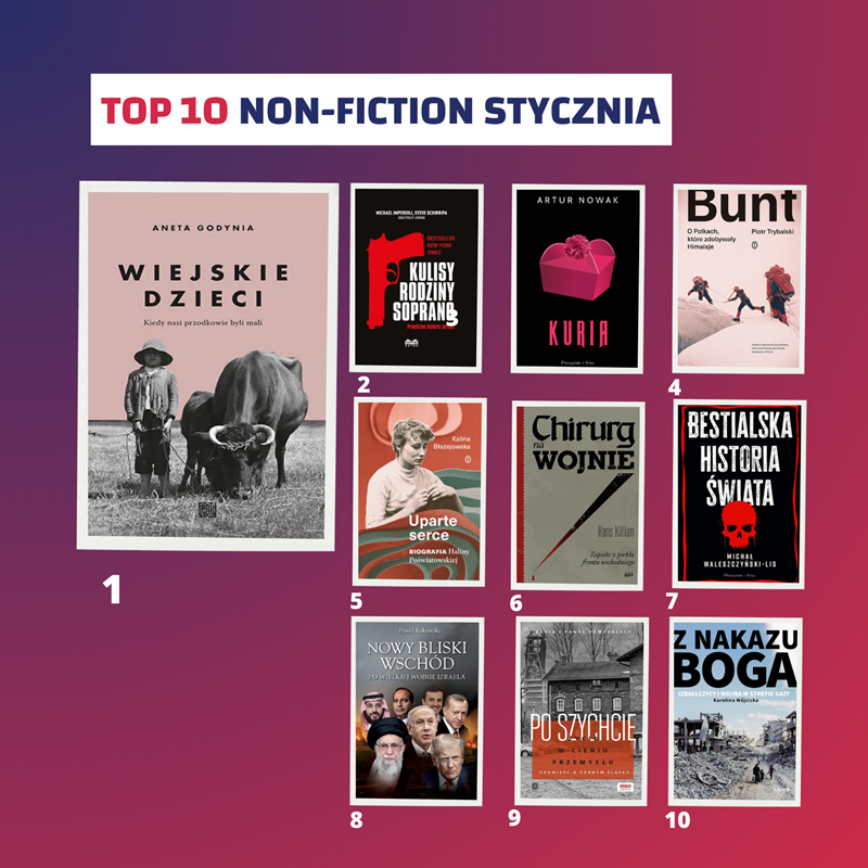 W styczniu w księgarni internetowej tantis.pl w kategorii non-fiction na szczycie zestawienia znalazła się książka Wiejskie dzieci. Kiedy nasi przodkowie byli mali Anety Godyni, która w ciekawy sposób przedstawia historie związane z dzieciństwem naszych przodków. W czołówce znalazły się również Kulisy Rodziny Soprano. Prawdziwa historia serialu Michaela Imperioli’ego i Steve’a Schirripy,Bunt. O Polkach, które zdobywały Himalaje Piotra Trybalskiego oraz Uparte serce. Biografia Haliny Poświatowskiej Kaliny Błażejowskiej. Dużym zainteresowaniem cieszyły się także książki o tematyce historycznej i reportażowej, takie jak Chirurg na wojnie. Zapiski z piekła frontu wschodniego oraz Bestialska historia świata Michała Waleszczyńskiego-Lisa.