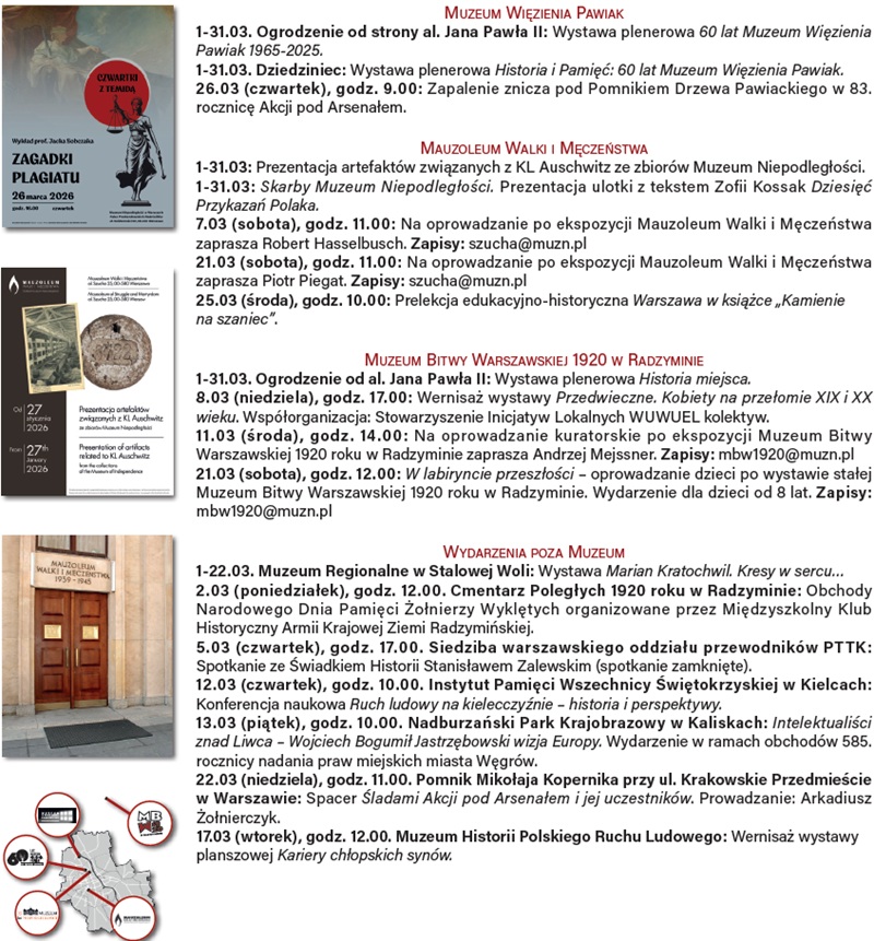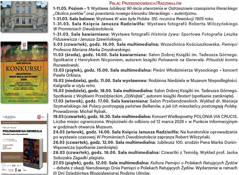 Warszawskie Muzeum Niepodległości prezentuje swój program na marzrec 2026 roku.
