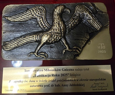 16 kwietnia Towarzystwo Miłośników Gniezna przyznało tegoroczną Nagrodę TMG prof. UJK dr hab. Annie Jabłońskiej za książkę roku 2025 pt. “Bożogrobcy św. Jana w świetle źródeł gnieźnieńskich w okresie staropolskim”, wyróżniając jej najnowszą publikację jako szczególnie istotny wkład w badania nad historią i dziedzictwem kulturowym Gniezna oraz Wielkopolski.