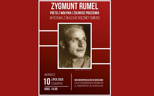 W 82. rocznicę tragicznej śmierci Zygmunta Rumla – poety, żołnierza i emisariusza, który zginął na Wołyniu w lipcu 1943 roku, Muzeum Niepodległości w Warszawie zaprasza na uroczystość upamiętnienia jego pamięci.