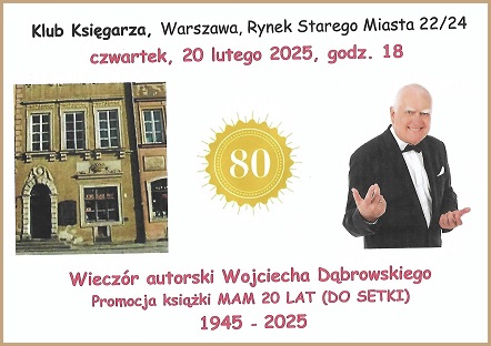 Klub Księgarza zaprasza na Wieczór promocyjny książki Wojciecha Dąbrowskiego Mam 20 lat (do setki) 1945-2025.
