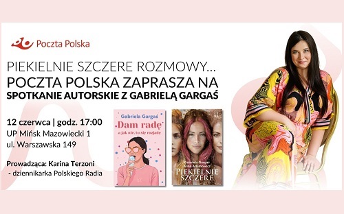 Już jutro, 12 czerwca w placówce pocztowej w Mińsku Mazowieckim odbędzie się kolejne spotkanie autorskie organizowane przez Pocztę Polską. Autorka książek i podcasterka Gabriela Gargaś opowie o swoich dwóch najnowszych tytułach – Piekielnie szczere oraz Dam radę, a jak nie to się rozjadę.