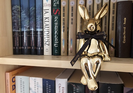 Taki oto złoty zajączek przykicał dziś rano do nas z Poznania i rozsiadł się między książkami. To świąteczne życzenia od drukani Abedik – dziękujemy!