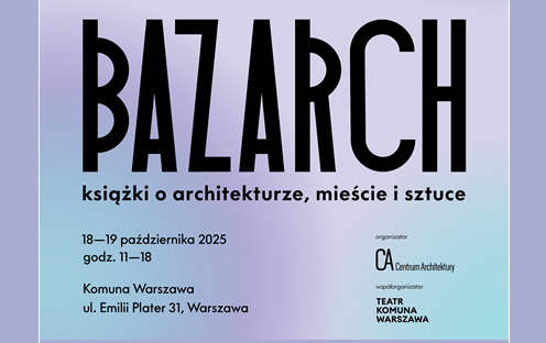 BAZARCH to dwudniowe święto książki, podczas którego w jednym miejscu znajdziecie aktualny przegląd najnowszych wydawnictw okołoarchitektonicznych: publikacje o architekturze, przestrzeni, mieście, wsi, planowaniu przestrzennym, ekologii, budownictwie, krajobrazie, dziedzictwie, zabytkach i sztuce w przestrzeni publicznej.
