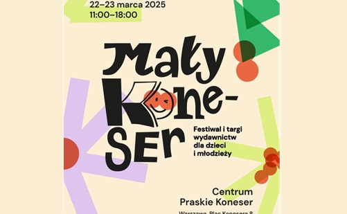 W dniach 23-24 marca odbędzie się trzecia edycja festiwalu i targów wydawnictw dla dzieci i młodzieży Mały Koneser. W imprezie weźmie udział dwudziestu pięciu polskich wydawców i trzy oficyny zagraniczne. Tym razem organizator, wydawnictwo Wytwórnia, zaprasza do Centrum Kreatywności Targowa na warszawskiej Pradze.