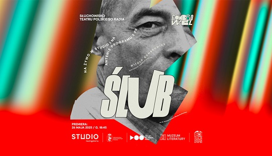 Po świetnie przyjętym słuchowisku „ONI” Witkacego, STUDIO i Polskie Radio zapraszają 26 maja (poniedziałek) na kolejną odsłonę cyklu teatralnych słuchowisk na żywo. Tym razem będzie to „Ślub” Witolda Gombrowicza – tekst niepokojący, przewrotny i pełen językowej gry. Reżyser Polskiego Radia – Tadeusz Kabicz, po raz drugi, sięga po formę, która wyostrza sens – pozwala, by słowo wybrzmiało czysto i bez teatralnych podpórek.